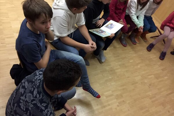 Für die Unterstufenschüler haben die 6.-Klässler ihr Bestes gegeben. Sie haben ihre Lieblingsbücher vorgetragen und ihre Geschichten mit Theatereinschüben, Requisiten und lautmalerischen Stimmen spannend gestaltet. Zur Auflockerung zwischendurch gab es spontane Spiele.