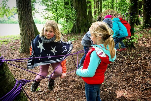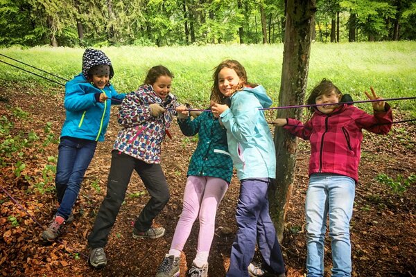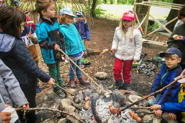 Über Mittag wärmten zwei Feuer vor der kühlen Bise und wer immer noch fror, kam bald beim Klettern, Versteckspielen oder Hütten bauen ins Schwitzen.
