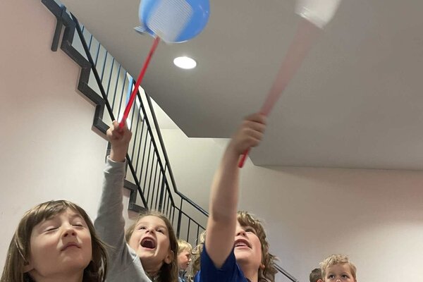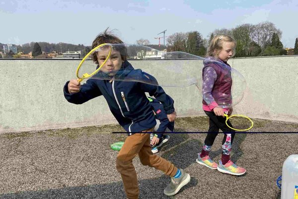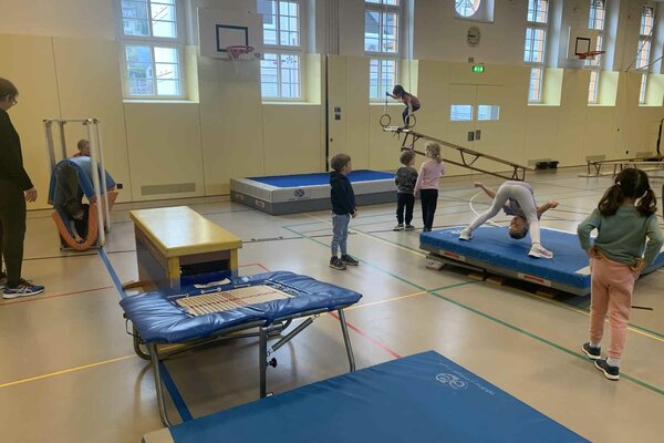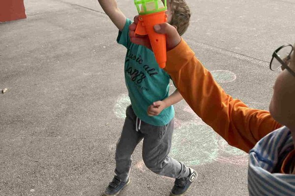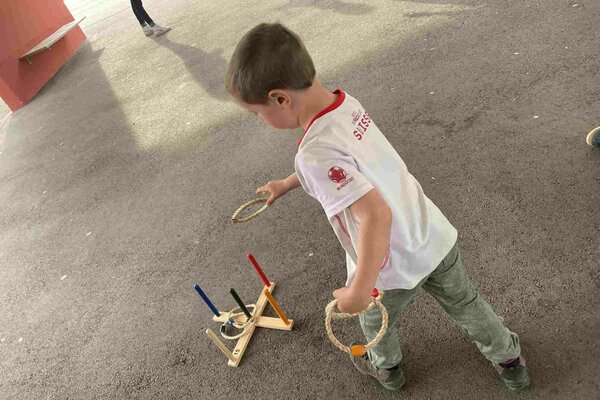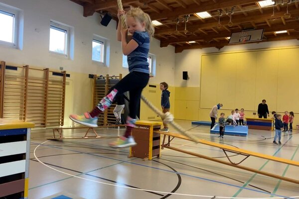 Rennen, hüpfen, werfen, der Energie freien Lauf lassen, lachen, schwitzen, klettern, balancieren, staunen, mutig sein und alles gleich nochmals. In Gruppen zirkulierten die Kinder von Posten zu Posten, gespannt auf das, was sie als nächstes erwartet. Toll war auch das gemeinsame Znüni auf dem Schueli, welches alle Kindergartenkinder gemeinsam sichtlich genossen haben.