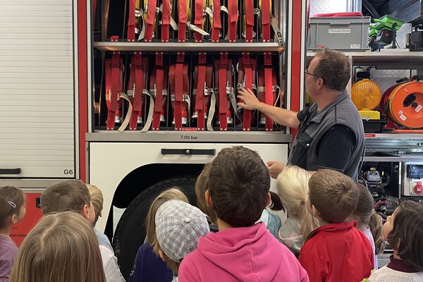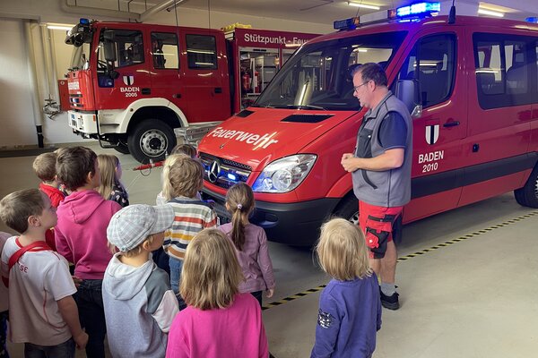 Der Kiga C durfte am 8. November einen eindrücklichen Besuch beim Feuerwehrlokal Ennetbaden machen. Der Feuerwehrmann Michi Fuchs hat für uns eine sehr spannende Führung ermöglicht