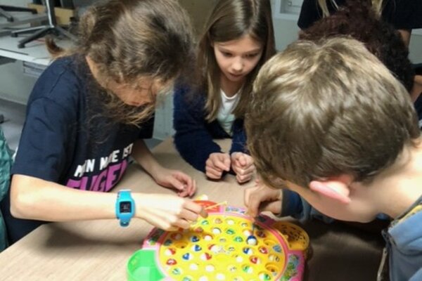 Stell dir vor, du wachst eines Morgens auf und bist ein Pfefferstreuer. Wie willst du nun den ganzen Haushalt schmeissen? Oder du findest einen Wal in deiner Badewanne, aber keiner will dir glauben. Welche spannenden Abenteuer verbergen sich in den Büchern, die oben im magischen Baumhaus versteckt sind und was ist eigentlich genau dieses flauschige, violette Dings aus dem Schrank, das mich da anquatscht? Bei Kerzenschein und in gemütlicher Runde zwischen Kissen und auf Sofas verwandelten sich am Freitagabend die Klassenzimmer in Erzählräume, in denen die Kinder Geschichten von Monstern, Hexen und Zombiegoldfischen lauschten. Die Schülerinnen und Schüler der sechsten Klassen lasen mit grossem Engagement den Kindern der Unterstufe vor, zeigten Bilder und animierten ihre jüngeren Kamerad*innen mit anschliessenden Quizfragen und Spielen. Sie übernahmen dabei Verantwortung und kümmerten sich auch darum, den Kindern ihr nächstes Erzählatelier zu zeigen, denn jeder und jede hatte Gelegenheit, drei Geschichten zu hören. Manche Zuhörenden wirkten wie verwandelt, einige wollten sich anschliessend das gehörte Buch ausleihen, denn manchmal reichte die Zeit gerade, um an der spannendsten Stelle zu unterbrechen und das Schicksal der/des Held*in im Ungewissen zu belassen.